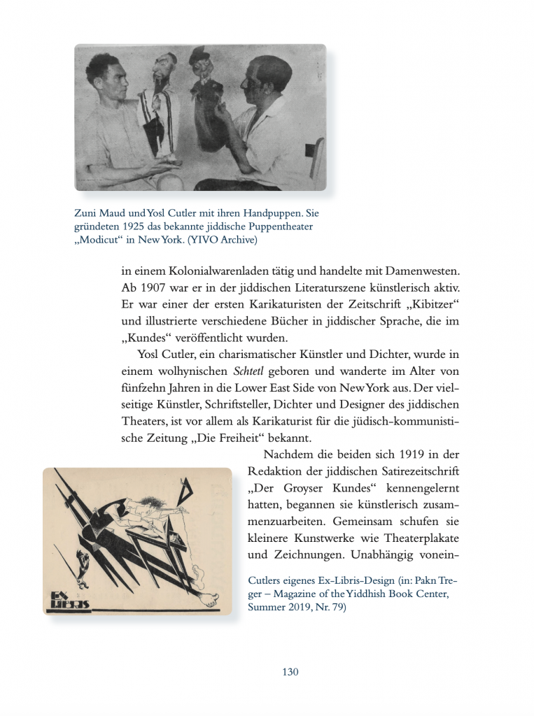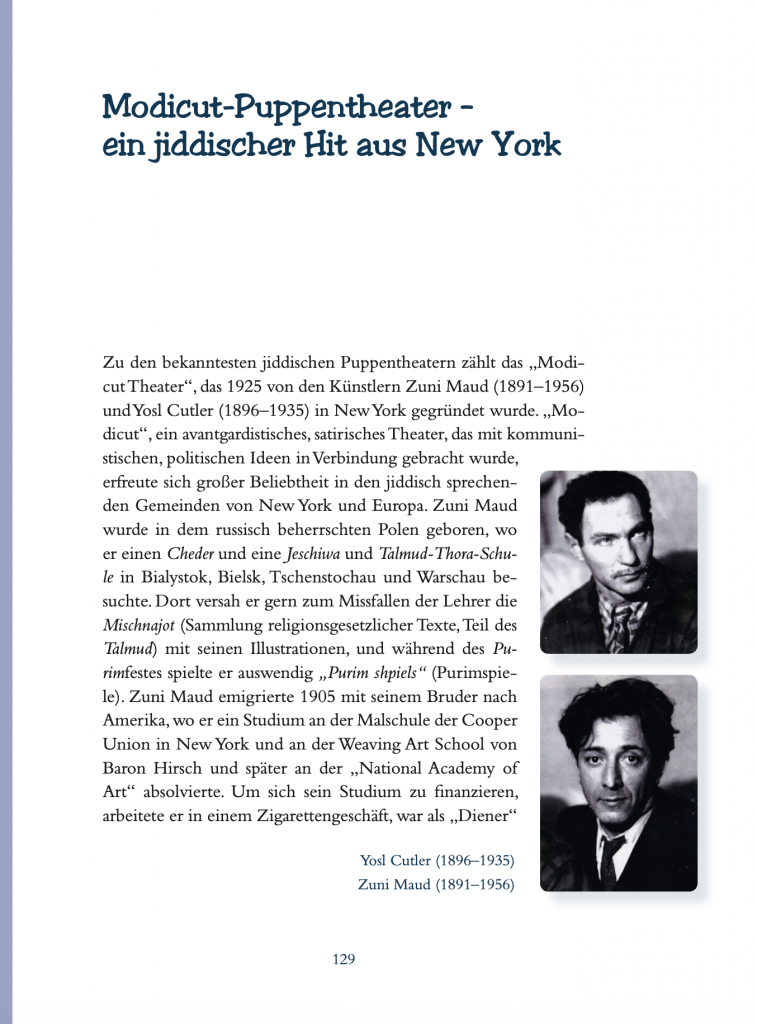 Als Teil des Aufblühens der jiddischen Kultur in New York brachte das von den Künstlern Zuni Maud und Yosl Cutler gegründete Modicut-Puppentheater Anfang des 20. Jahrhunderts Avantgarde, Tradition, Folklore, jüdischen Humor, Satire und kommunistische Ideen zusammen.
