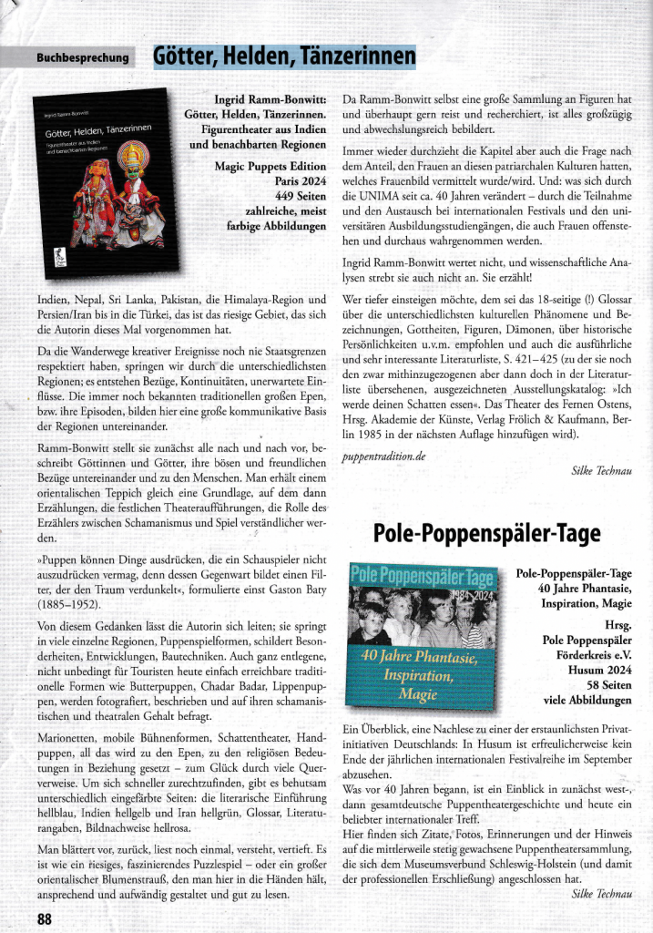 Die bunte Welt des orientalischen Figurentheaters öffnet geheime Schatzkammern, führt zu Göttern und Göttinnen, zu Prinzen und Prinzessinnen, Dämonen, Tänzerinnen und Spaßmachern. Man hat Lust, sich in dieser Welt zu verlieren, eine Welt, die uns aus dem alltäglichen Leben in eine Erzählwelt aus bezaubernden Geschichten und Mythen führt.
